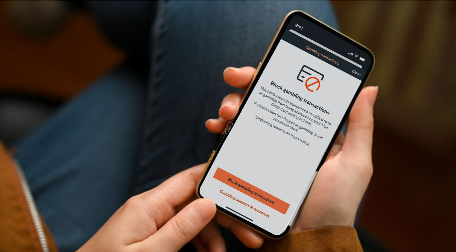 Our Gambling Block feature is available 24/7 in-app, so you can take control of how you spend your money in your own time. While you don’t have to call us to enable your Gambling Block, if you are worried about making any repayments as result of gambling, or for any other reason, please contact us - we’re here to help.